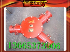 接线盒的隔爆外壳为钢板结构,盖采用螺栓压接形式,两侧为电源引线端,并设有控制线引入装置。壳体内设有三个主接线端子,接线柱上压板将电缆头压接。基座为高压电瓷,并设有一个辅助接线端子。
